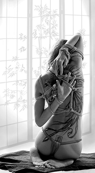 V: In the Western variation, the tying is more about bonding the person. Whereas the Japanese bondage is more about the way the rope is applied. I found the following saying on the internet that helped me differentiate the two: “Western rope bondage is beautiful women that happen to be in ropes; Japanese rope bondage is beautiful rope that happens to be on a woman.”